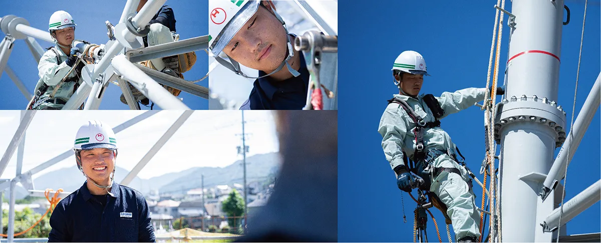 自分が作業した鉄塔が完成し、立派なその姿を見た時はやりがいもひとしお。